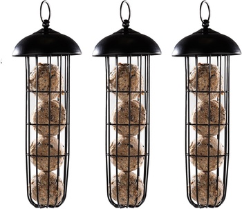 מחזיק כדור שומן תלוי לציפורים בר, מזין עם גג